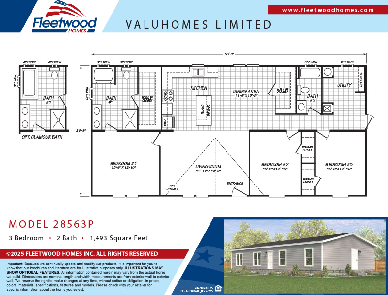 - 14x40 or 30x8 window for both baths